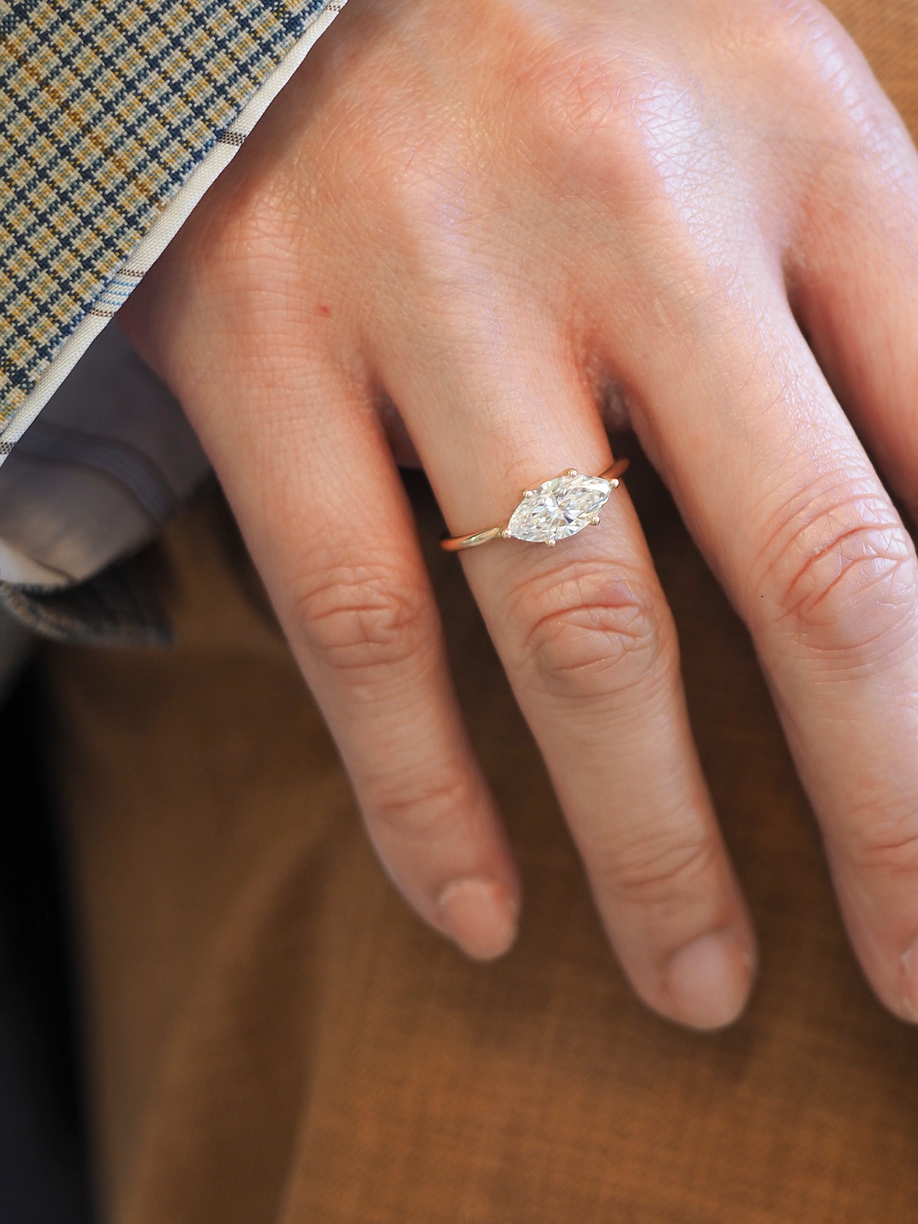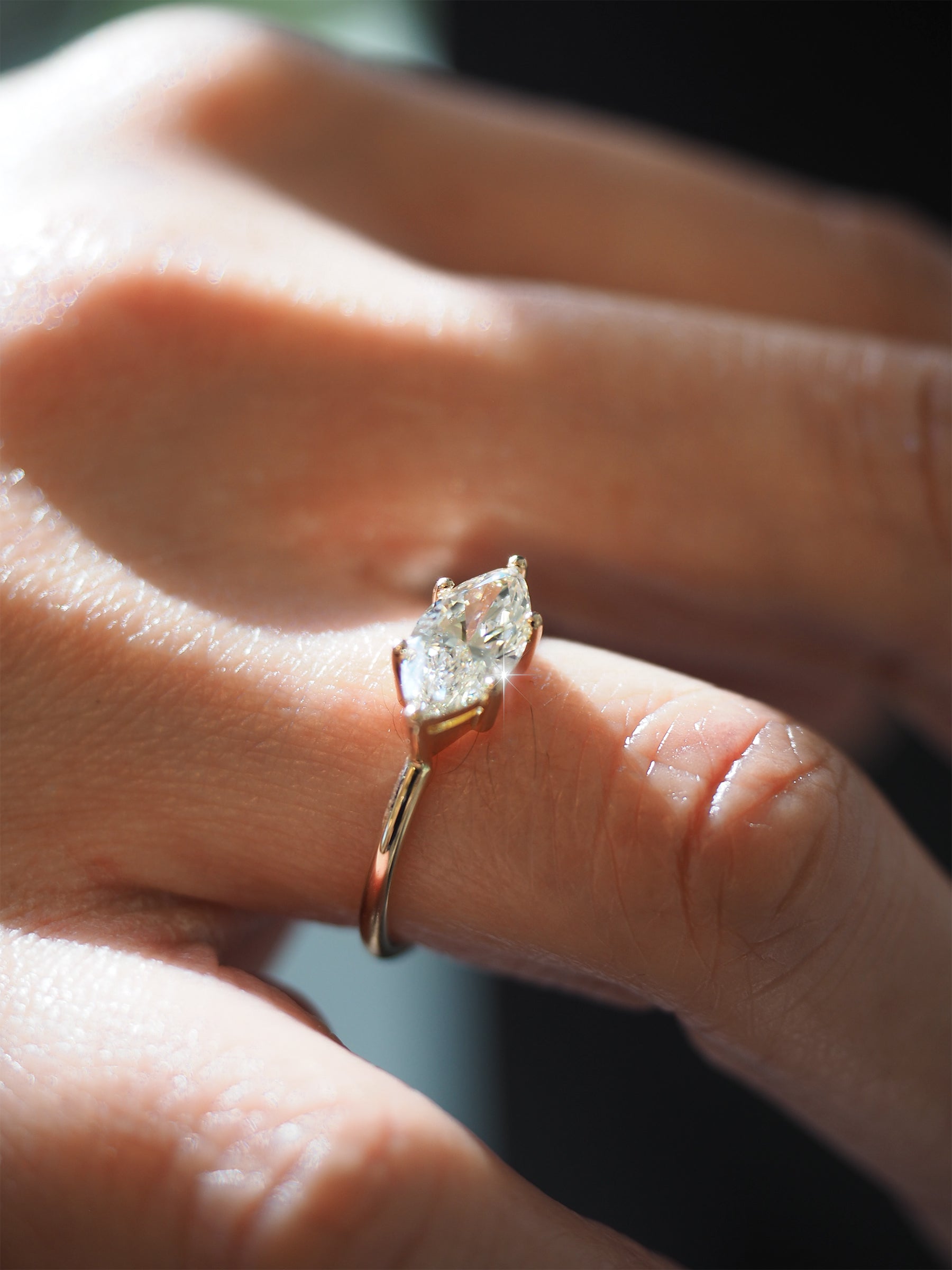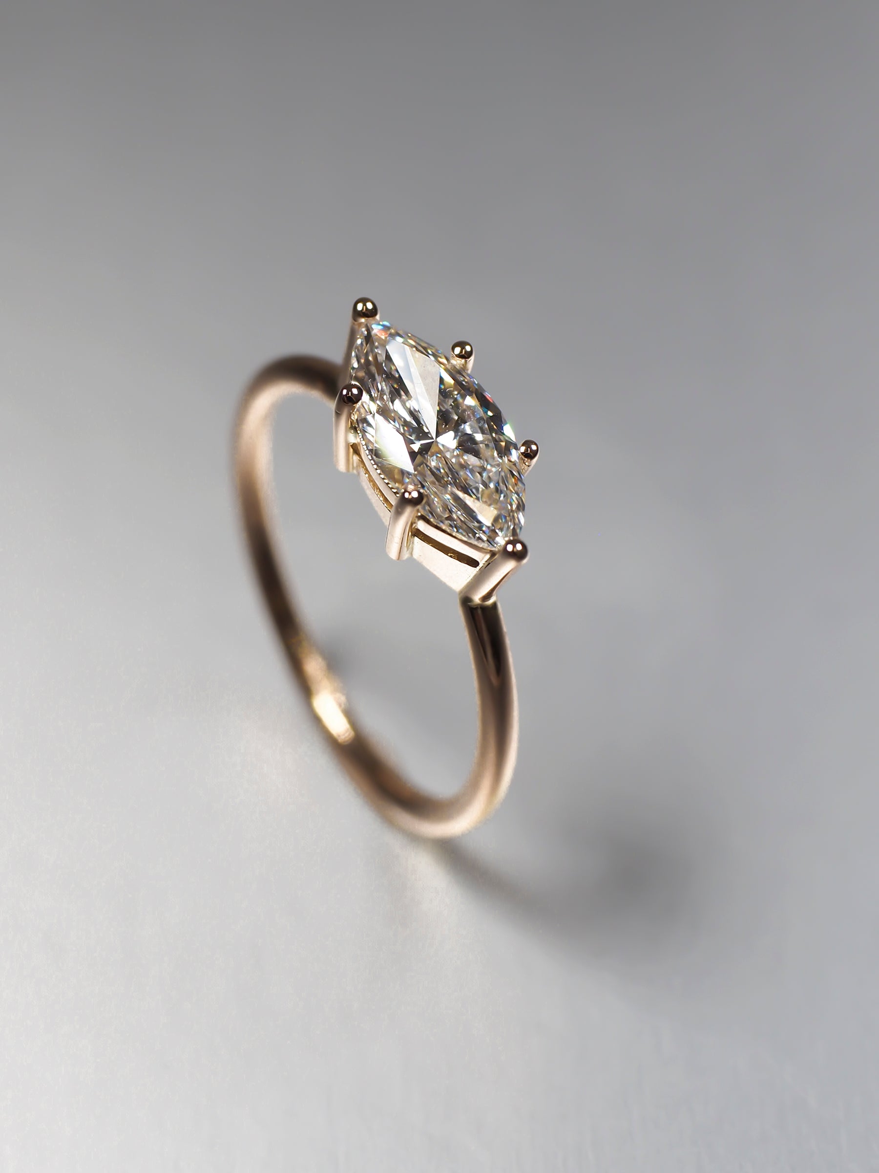 Slanted Marquise Lab Diamond Solitaire Ring