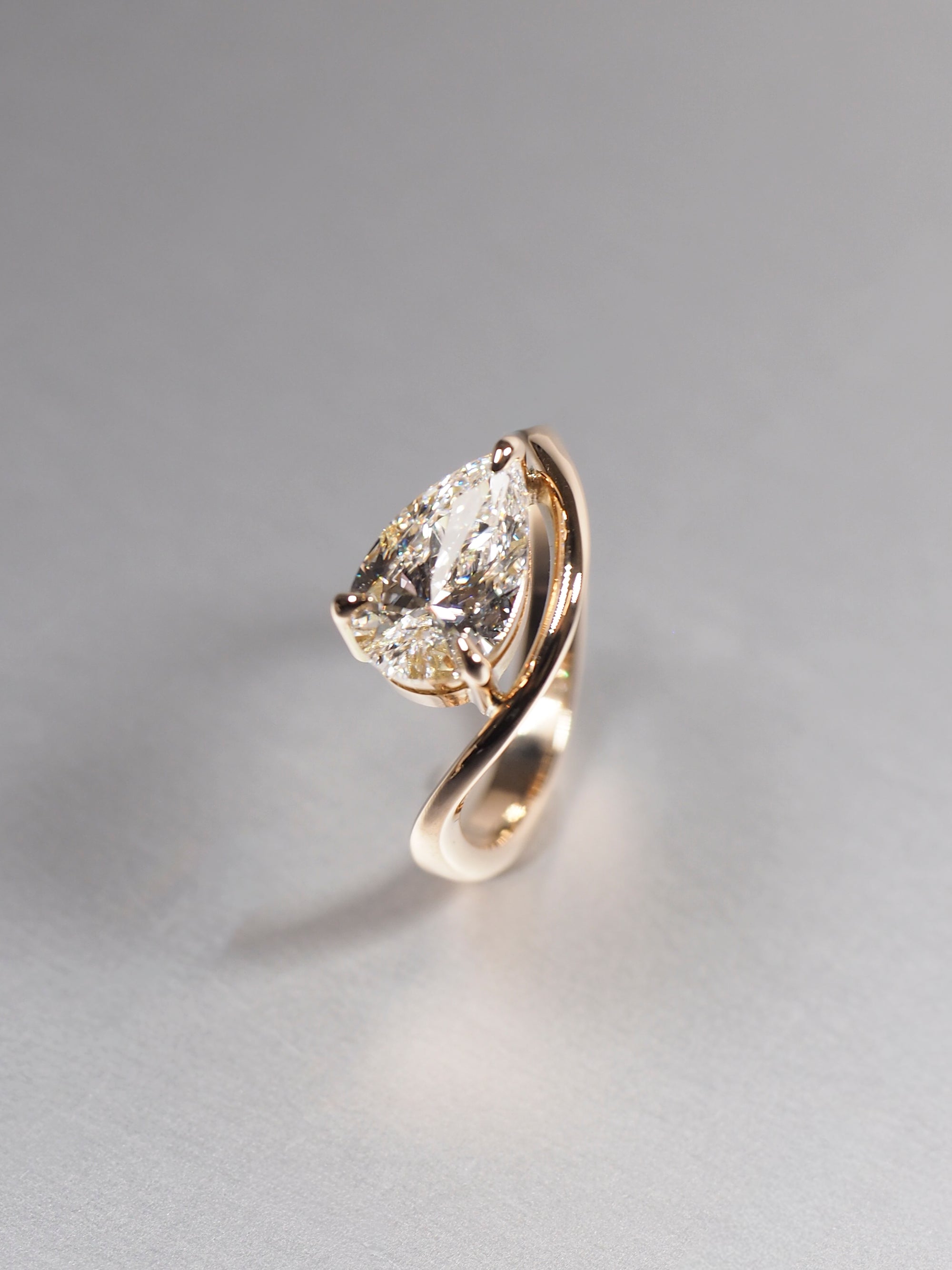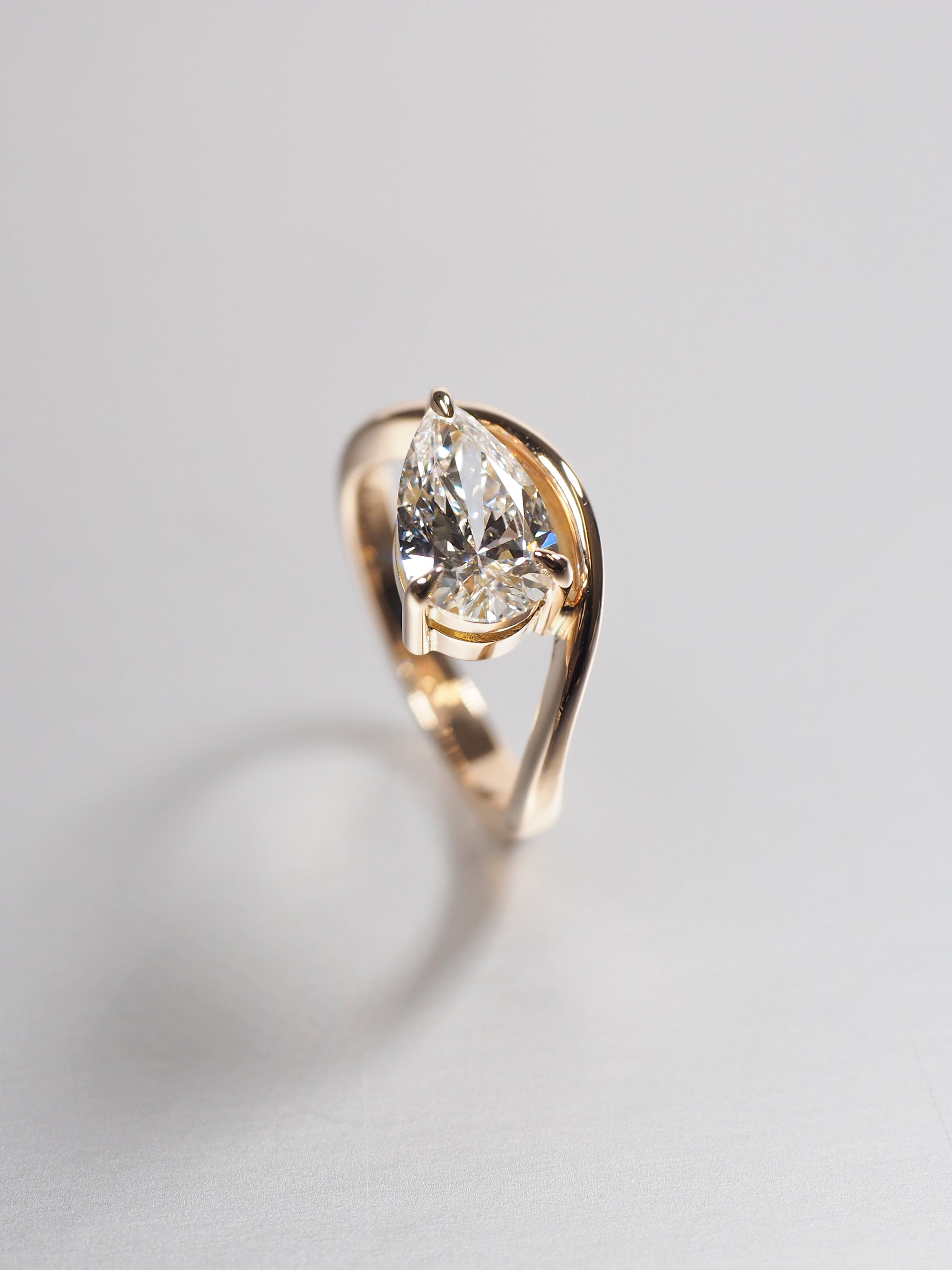 Slanted Pear Diamond Solitaire Ring
